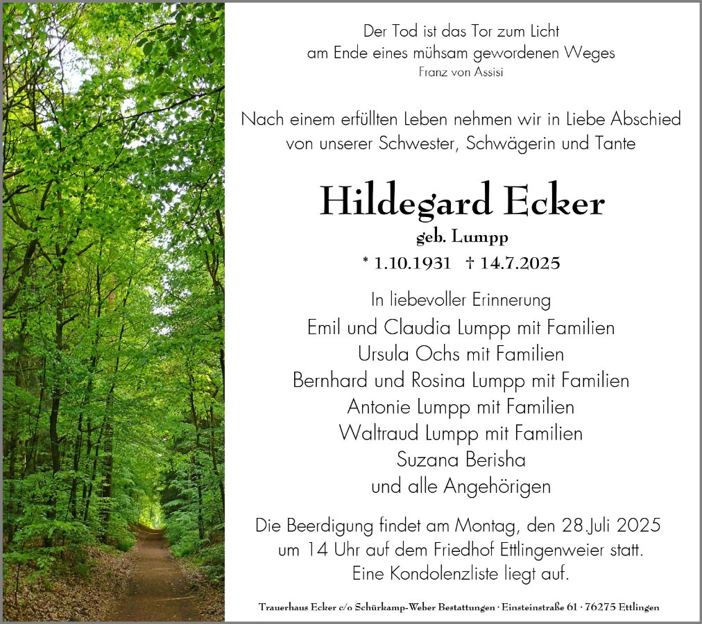 Hildegard Eckergestorben am 14. Juli 2025